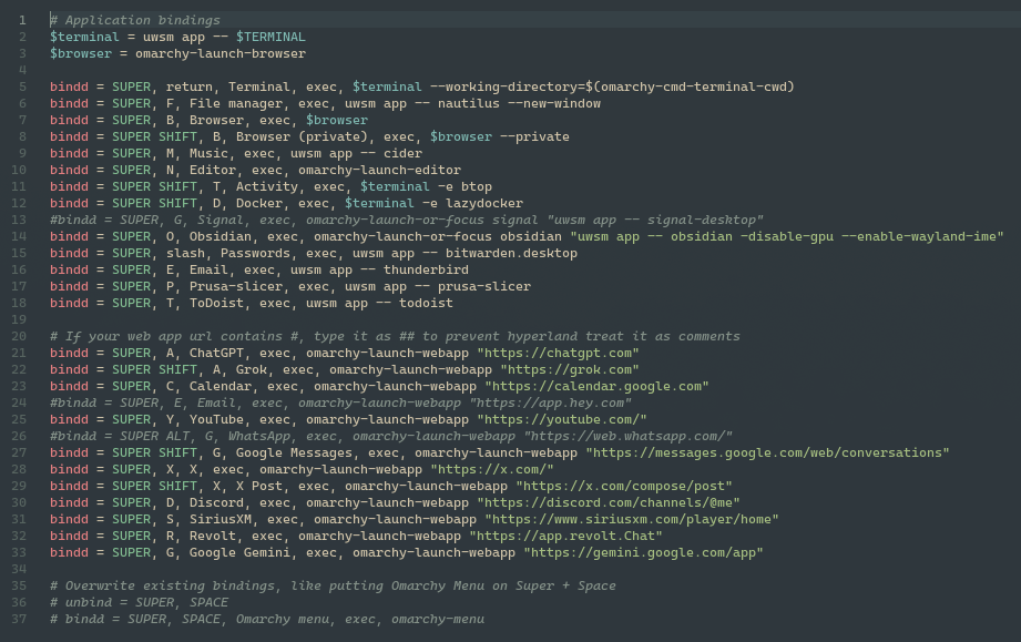 Many of the default web apps included with Omarchy weren’t useful to me, so I removed most of them. The few I did use, I kept — and even added several of my own.